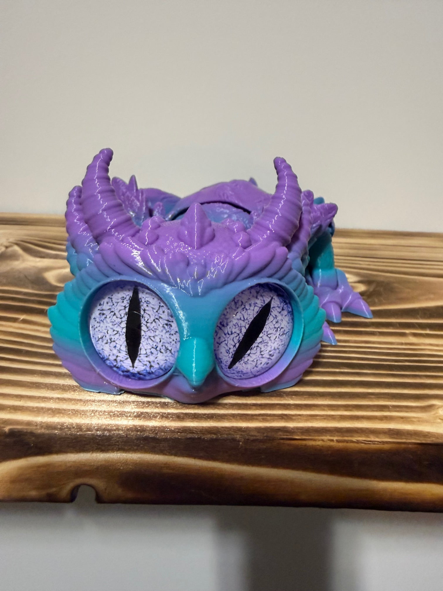 This beautiful Owl dragon comes with the feathered tail and is a true beauty. Its roughly 8 inches long.